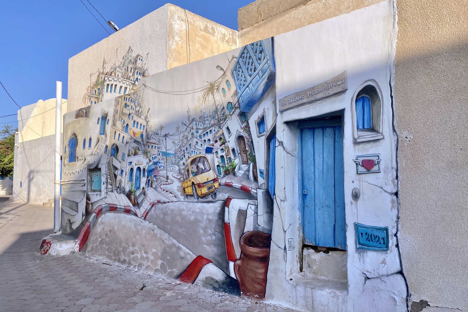 Das Gegenstück zu „Djerba Explore“ ist ein Ausflug in den kleinen Ort Erriadh. Hier entstand 2015 das größte Street-Art-Museum des Landes: Im Rahmen des Projektes „Djerbahood“ erhielten 150 Künstler:innen aus 30 Ländern die Möglichkeit, Häuserwände in ihrem ganz eigenen Stil zu bemalen. 250 Werke zieren das kleine Dorf. Die Kunstwerke finden sich überall: an Mauern, Kuppeln, Türen und in Innenhöfen.