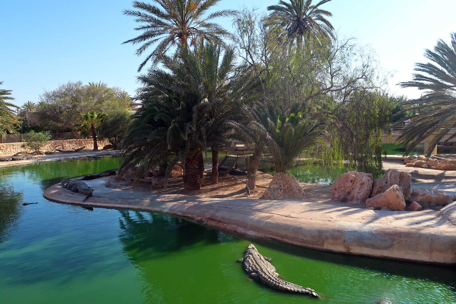„Djerba Explore“ erstreckt sich auf über 20.000 Quadratmeter. Es gibt ein Dorf mit weiß getünchten Mauern, in dem sich Boutiquen, Cafés und Restaurants befinden. Aufregend geht es im Krokodilpark zu, der der größte im Mittelmeerraum ist. Mehr als 400 Krokodile leben hier.