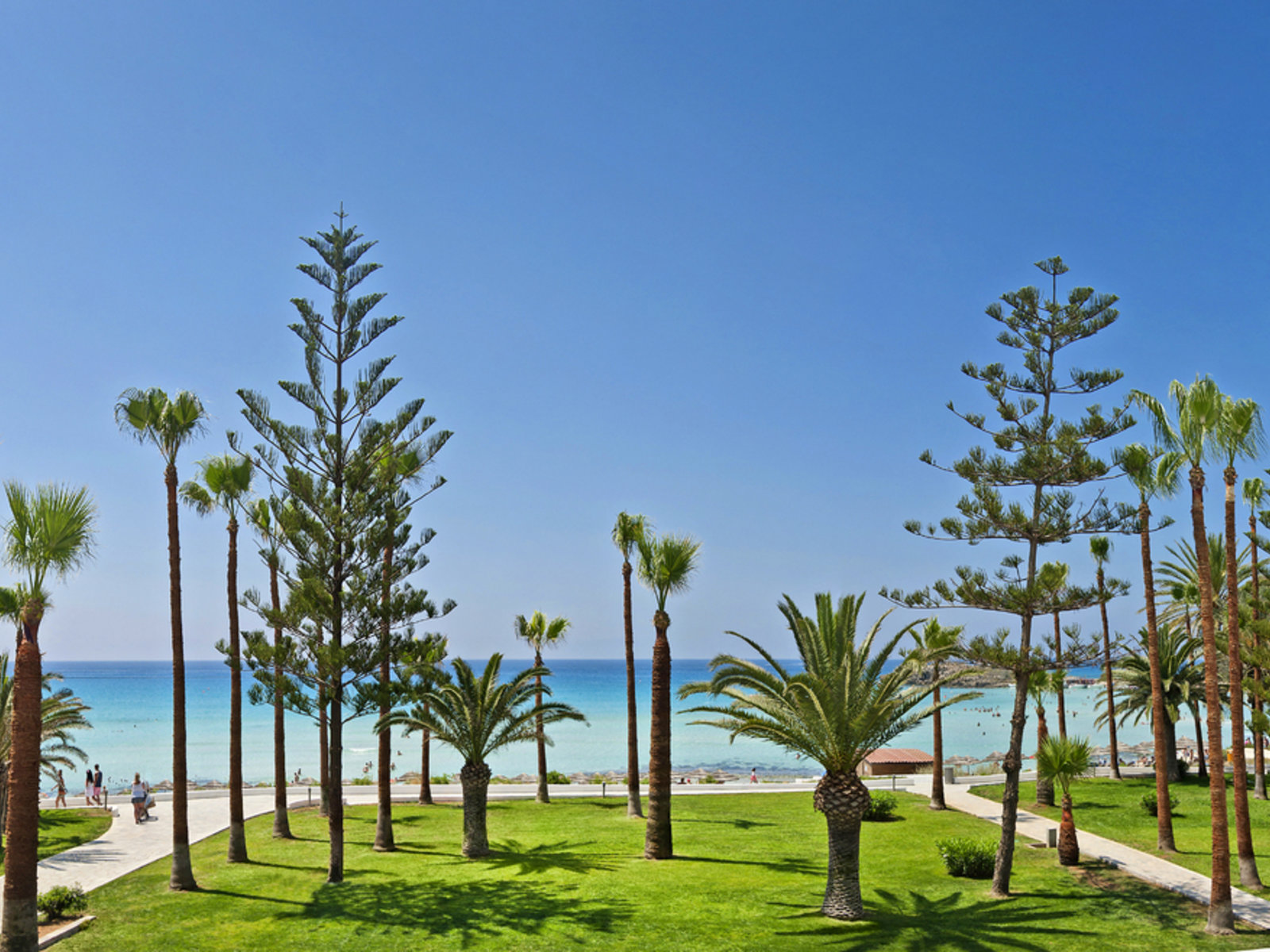 Das Holiday-Resort Nissi Beach verfügt über einen eigenen Hotelabschnitt am flach abfallenden, feinen Natursandstrand, der zu einem der schönsten Badestrände Zyperns zählt. Das Ortszentrum Ayia Napa mit Hafen, Kloster sowie zahlreichen Restaurants und Geschäften ist ca. 3 km entfernt.