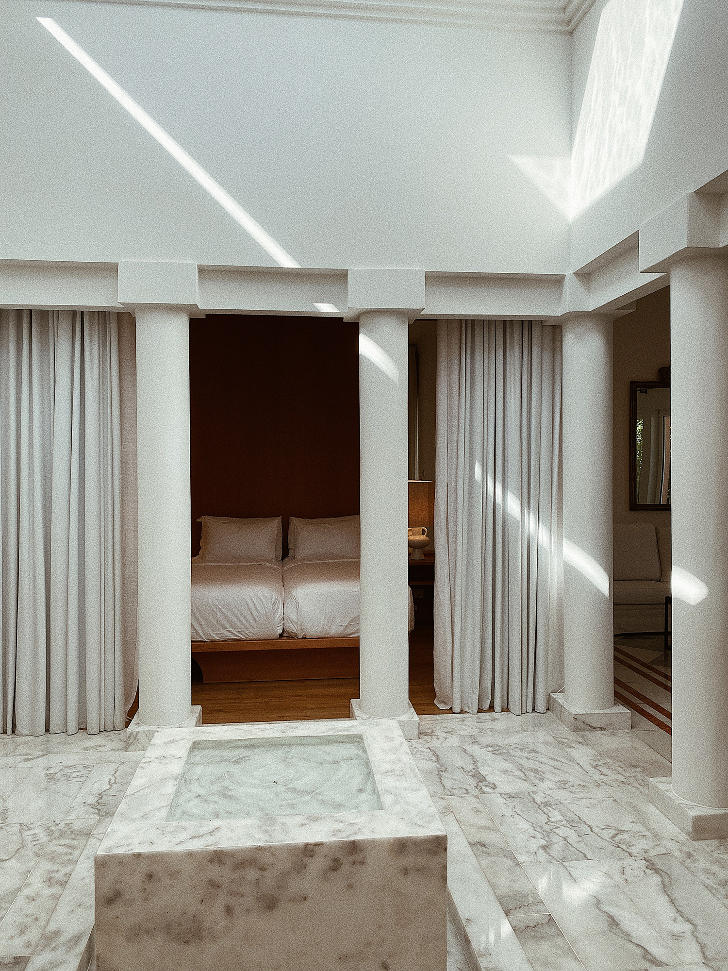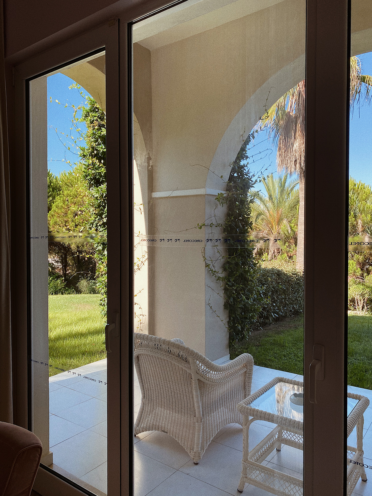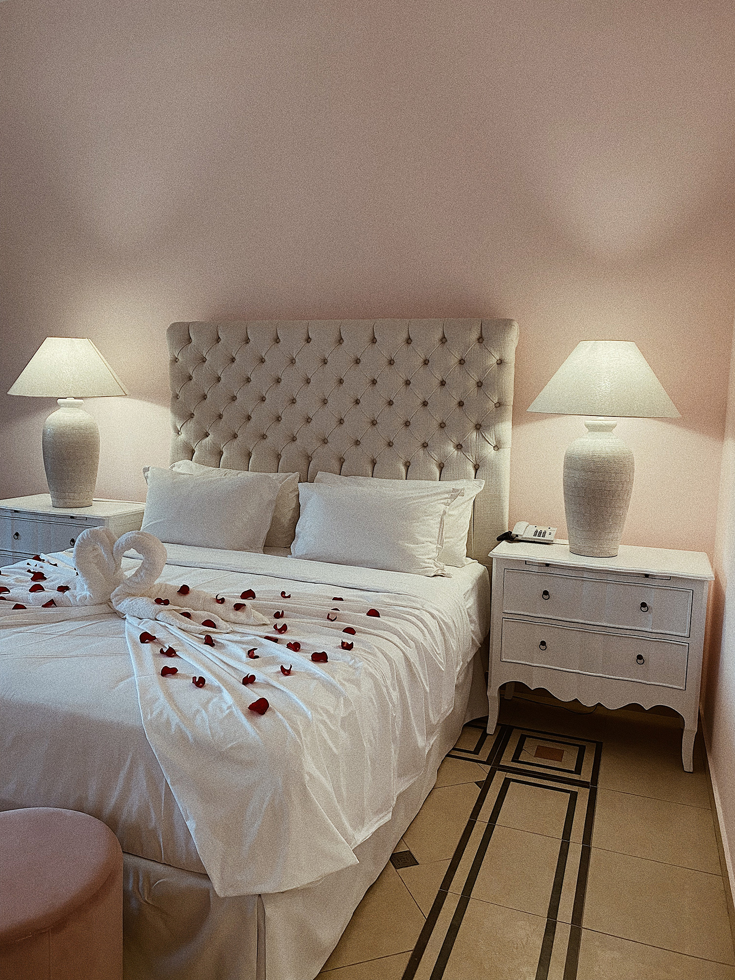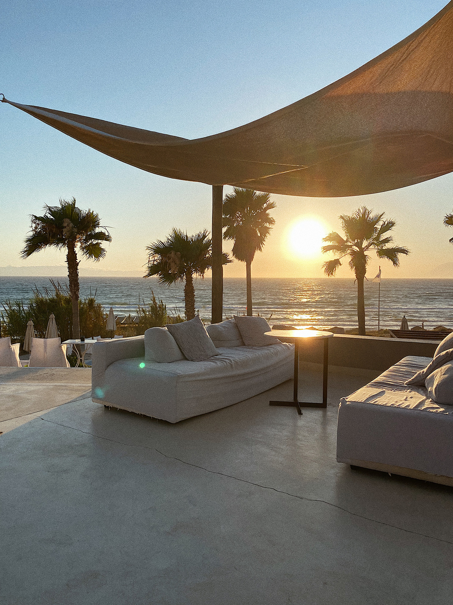 Gegen 19:00 Uhr trafen wir dann im wunderschönen Grecotel Mandola Rosa ein, genau zur Golden Hour – das Hotel zeigte sich direkt von seiner besten Seite. Ein Traum, sag‘ ich euch! Das Licht der Abendsonne strömte durch die Lobby und wir wurden mit leckeren Cocktails empfangen. Bester Start in den Urlaub!