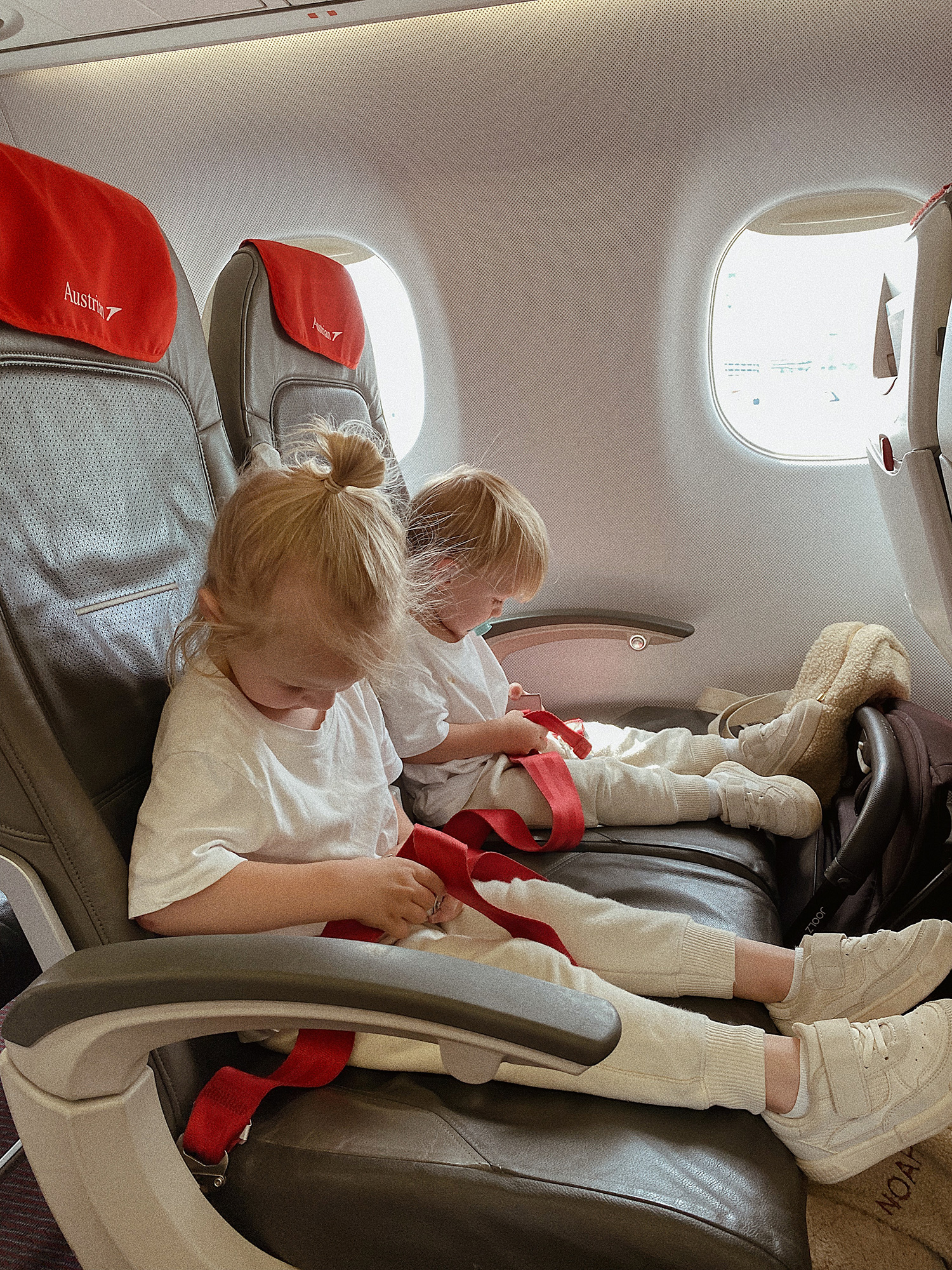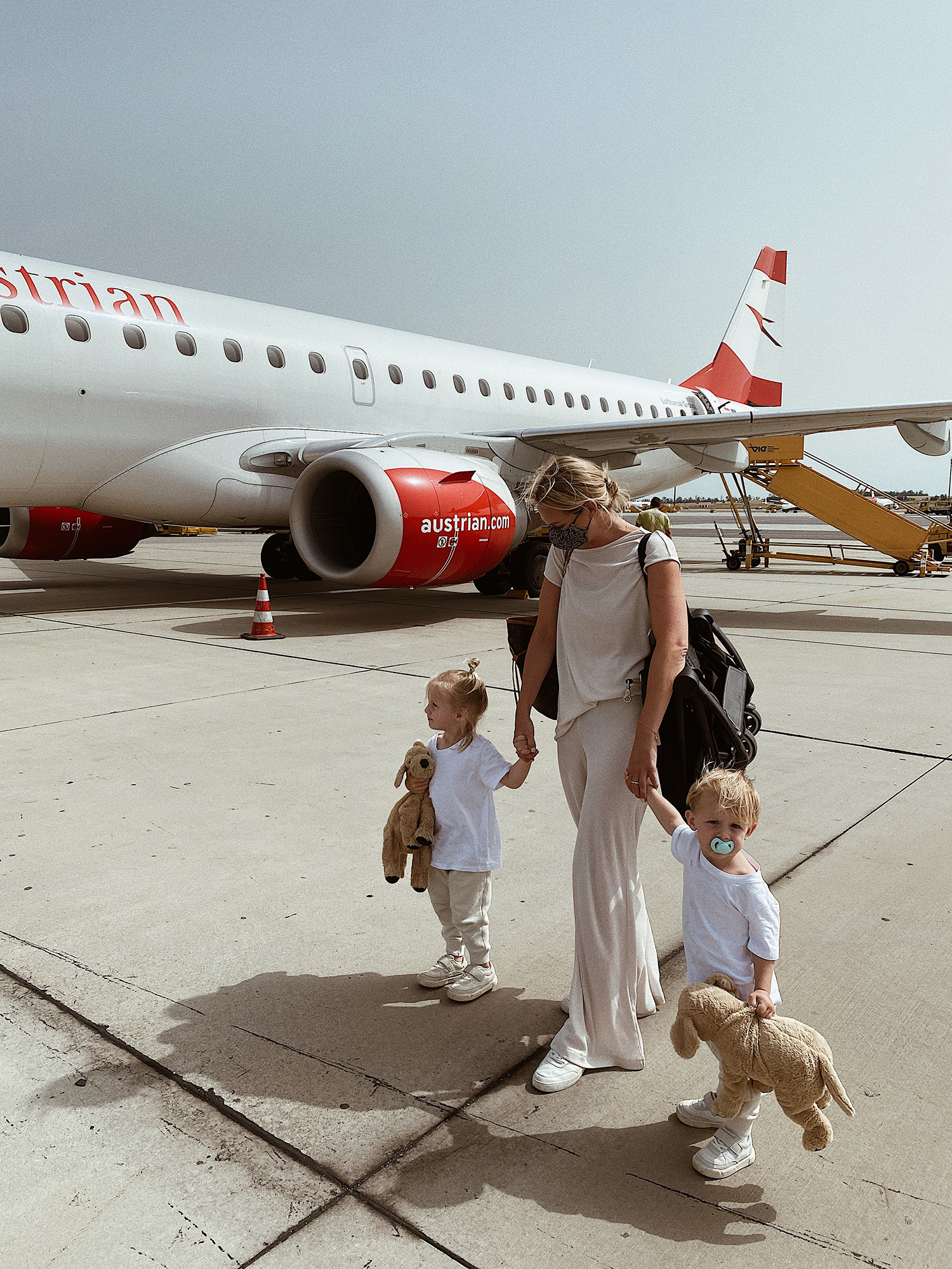 Generell war die Abwicklung am Flughafen sehr unkompliziert. Sowohl das Boarding als auch die Kontrolle der Maßnahmen gingen zügig voran. Nachdem wir unsere Sitzplätze im Flieger eingenommen hatten, gab es für die Jungs kleine Autos und Malbücher und so verging die Zeit sprichwörtlich „wie im Flug“. Die kurze Flugzeit von nicht mal 2 Stunden macht Griechenland als Urlaubsdestination, für alle die mit Kleinkindern reisen, besonders interessant. Daher waren wir auch letztes Jahr bereits auf Kreta mit unseren beiden Lausern. Den Blogbeitrag dazu findet ihr übrigens hier. Wie dem auch sei, knapp 2 Stunden kann man ohne Langeweile und Nervenzusammenbruch jedenfalls gut überstehen. 😉