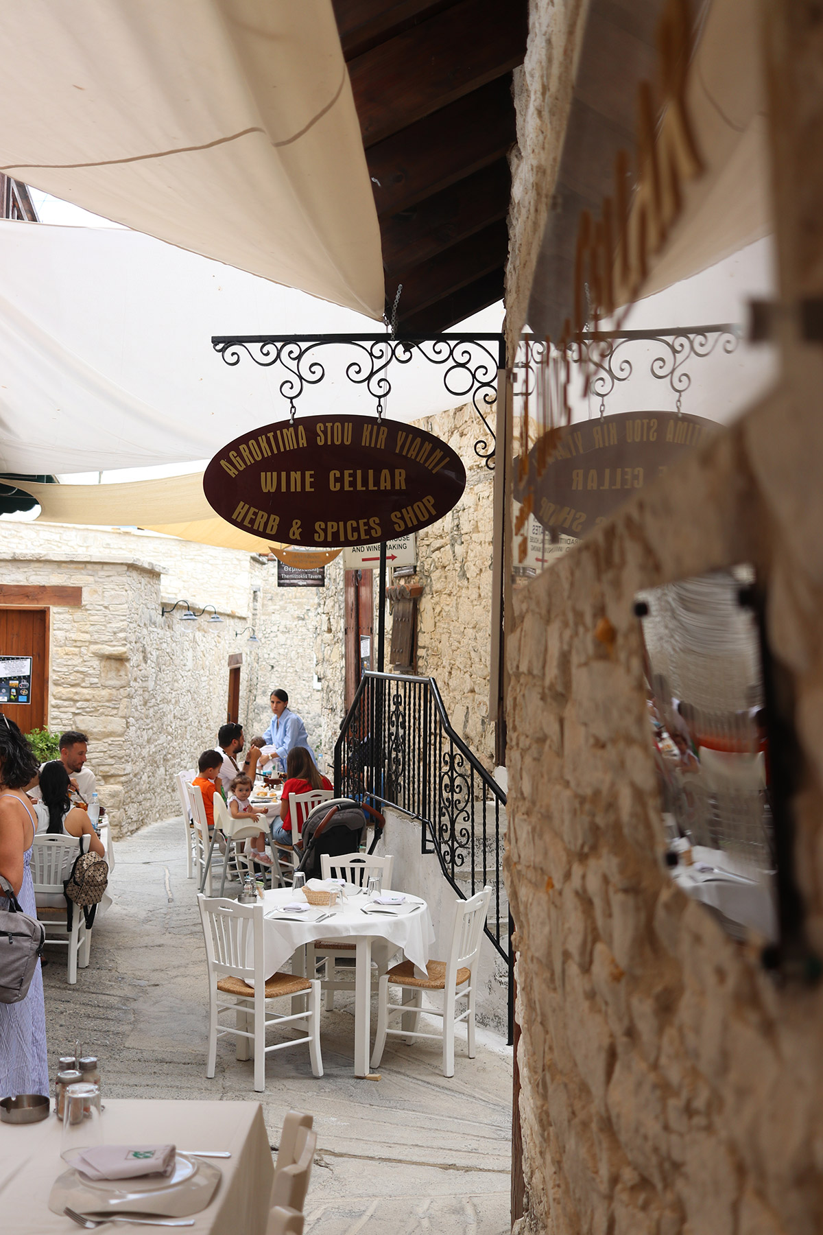 Wer gerne einmal etwas zypriotische Kultur erleben möchte, sollte sich das Weindorf Omodos nicht entgehen lassen. Wir haben uns an einem Sonntag eine typische ‚Meze‚ gegönnt – eine fast endlose Folge von kleinen, traditionellen Gerichten. Es kommen immer wieder kleine Speisen auf den Tisch. Nebenbei wird zypriotische Volksmusik gespielt, bei der die Einheimischen laut mitsingen. Kleiner Tipp – nicht jeden Teller gleich leer essen! Genießt die Leckereien “siga-siga”, also immer schön langsam. Es geht um das Beisammensein und Genießen.