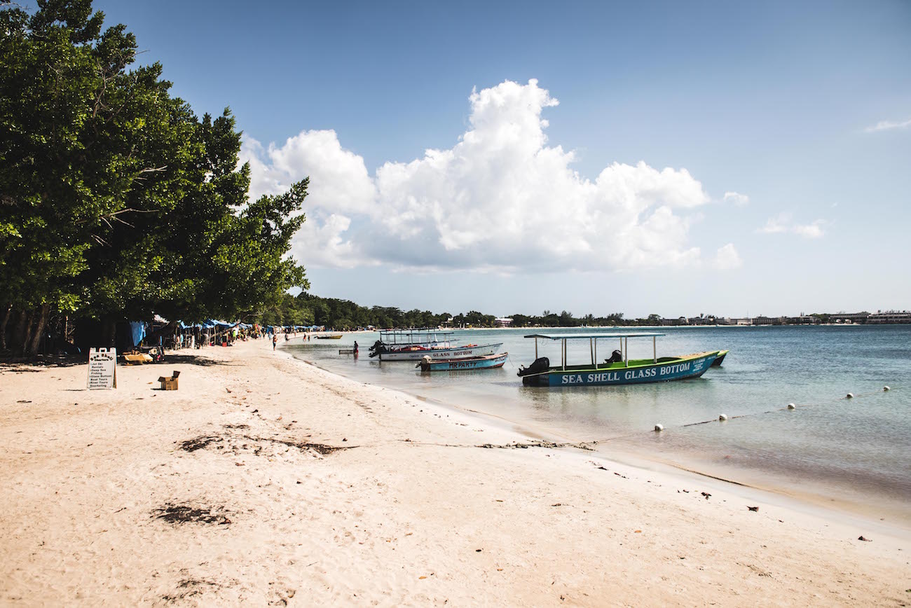Türkisblaues Wasser trifft weißen Sandstrand. Sieben Meilen, also mehr als elf Kilometer, ist der wohl schönste Küstenstreifen Jamaikas lang. Kein Hotel darf hier die höchste Palme überragen – für uns also genau der richtige Ort nach einem langen Flug. Mit einem Cocktail in der Hand machen wir es uns auf unserem Badetuch gemütlich, stecken die Zehen in den feinsten Sand der Welt und lauschen dem Rauschen des Meers. Paradies gefunden!