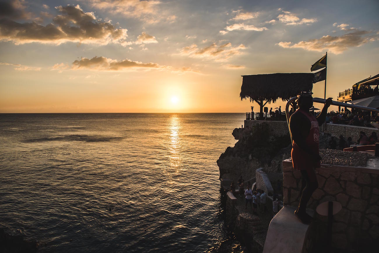 Das Rick’s Café ist ein absolutes Muss für jeden Jamaika-Reisenden. Wer nicht hier war, war auch nicht in Jamaika, erzählt uns ein Taxifahrer. Schon Bob Marley soll hier aufgetreten sein. Heute ist der Ort vor allem für seine waghalsigen Klippenspringer bekannt. Aus bis zu 35 Metern Höhe werden Kopfsprünge, Saltos und Schrauben vorgeführt. Bei den Einheimischen sieht das sehr gekonnt aus, Touristen lassen sich von der gigantischen Höhe der Klippen schon eher einschüchtern. Wir verzichten auf den Adrenalin-Kick und warten lieber mit einem Red Stripe Bier in der Hand auf den Sonnenuntergang. Denn für diesen ist das Rick’s Café ebenfalls berühmt.