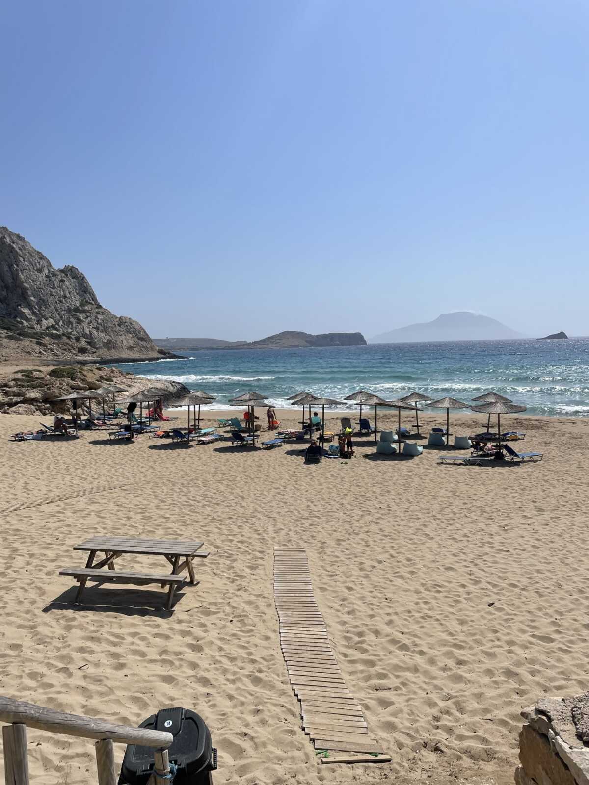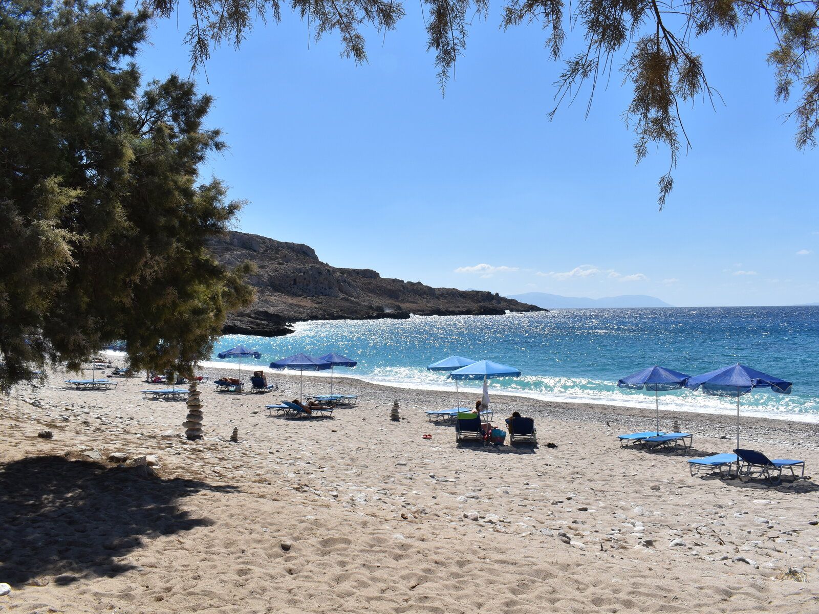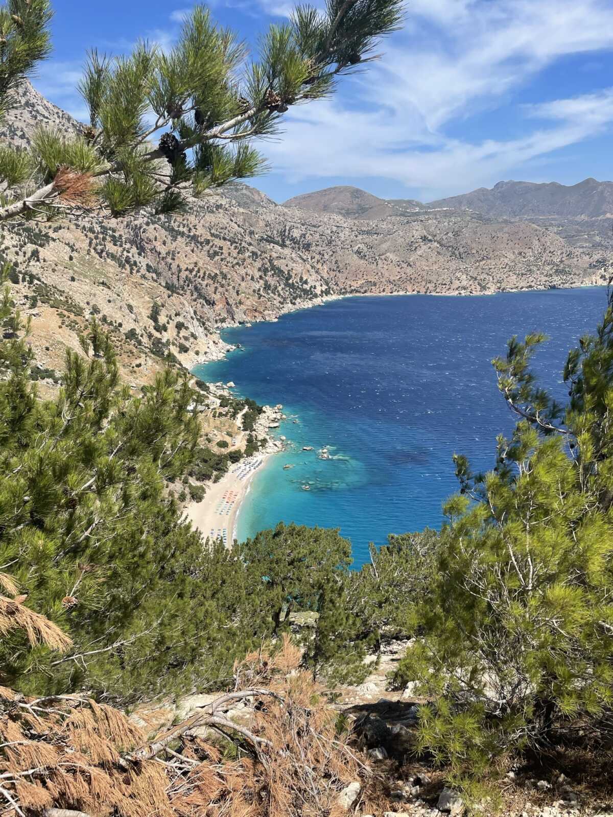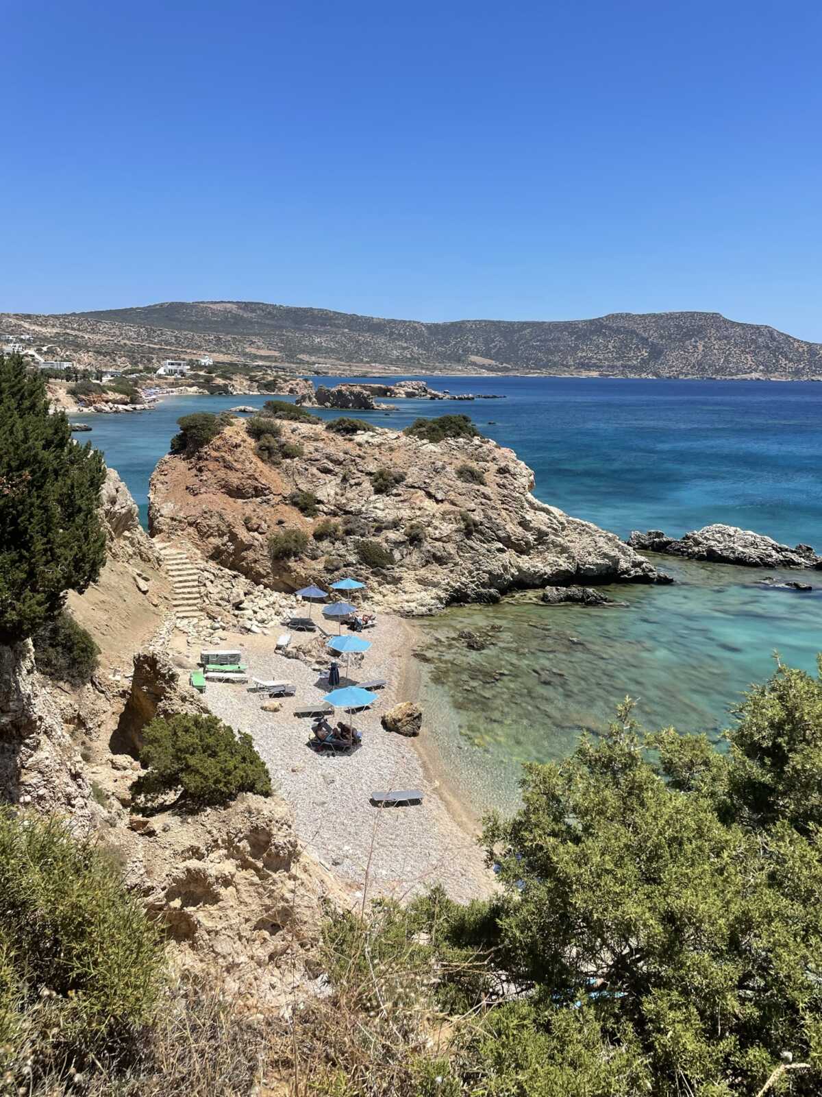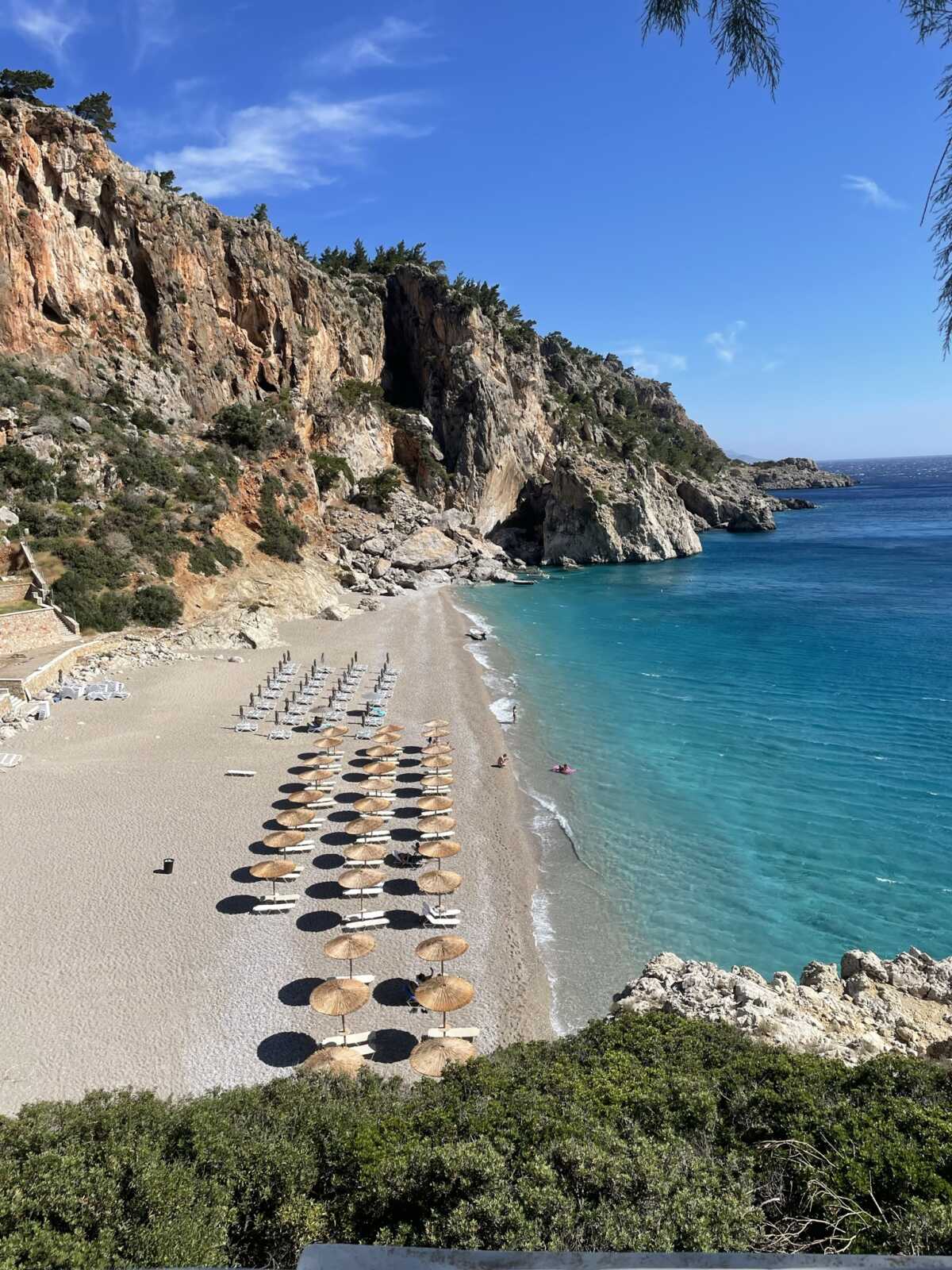 Ganz bequem: Die Bucht liegt ca. 20km von der Hauptstadt Pigadia entfernt und bietet sich somit ideal für einen Tages-Strand-Ausflug an.