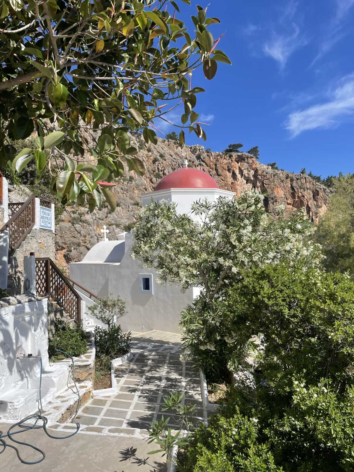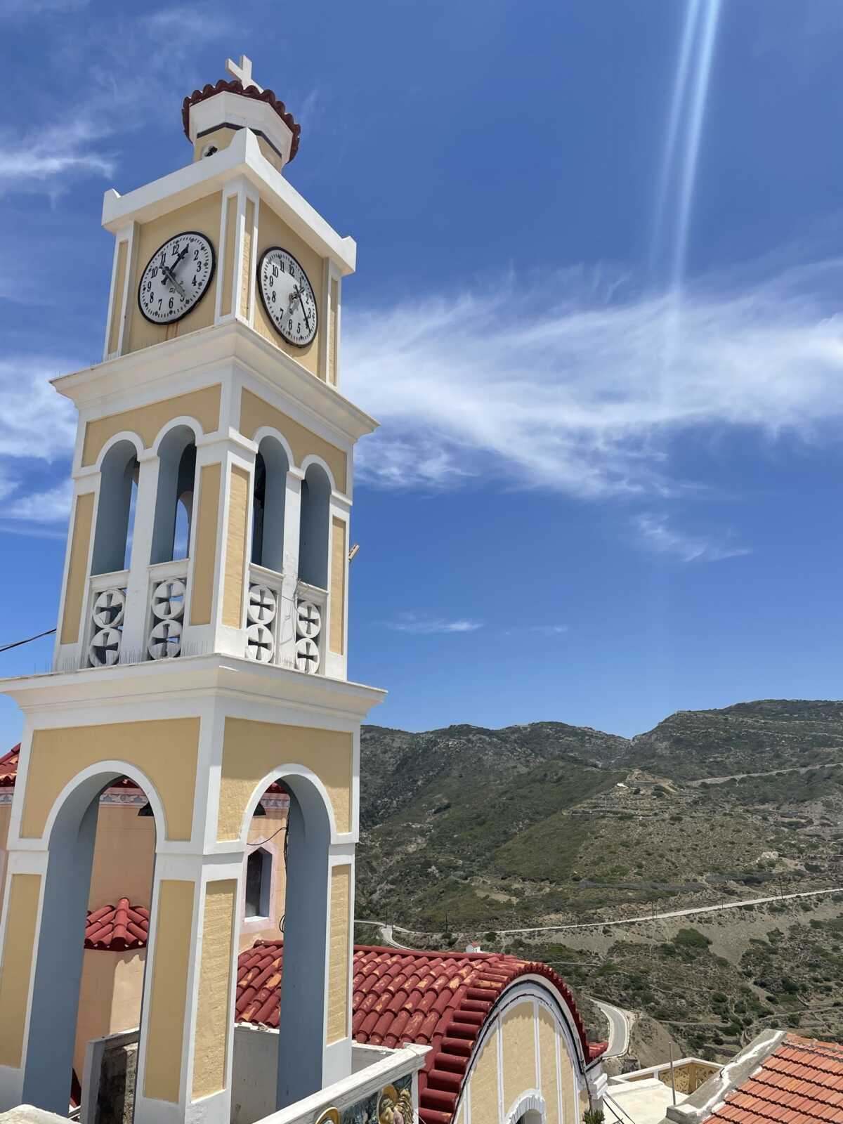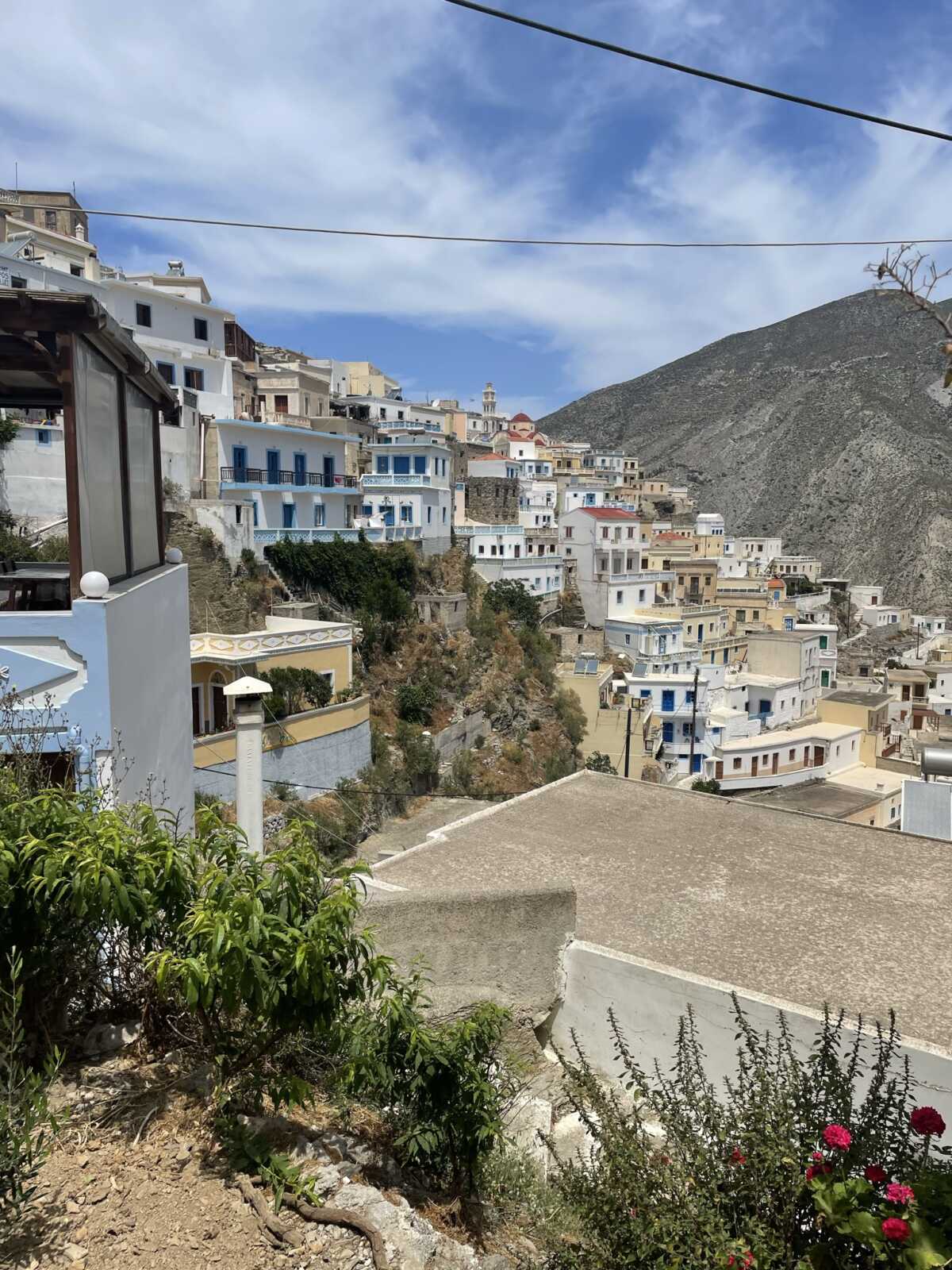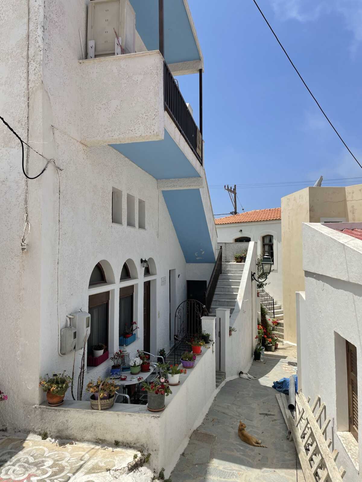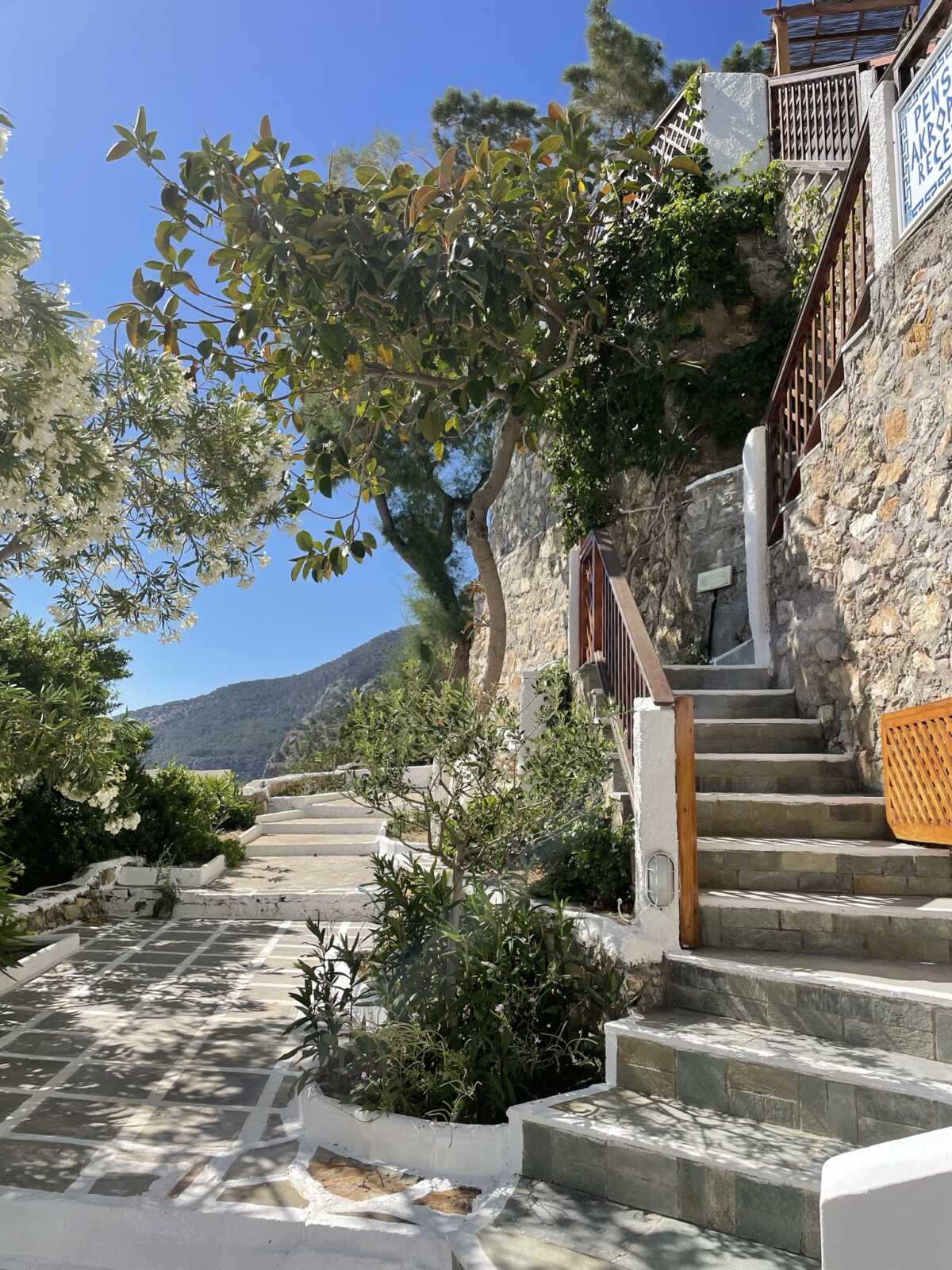 Das Bergdorf Volada liegt etwa 500m über dem Meeresspiegel. Von hier aus hast du einen traumhaften Blick auf das Meer und auf tieferliegende Dörfer. Die engen Gassen, weißen Häuser und bunten Blumentöpfe verleihen dem Dorf die typisch, griechische Atmosphäre.