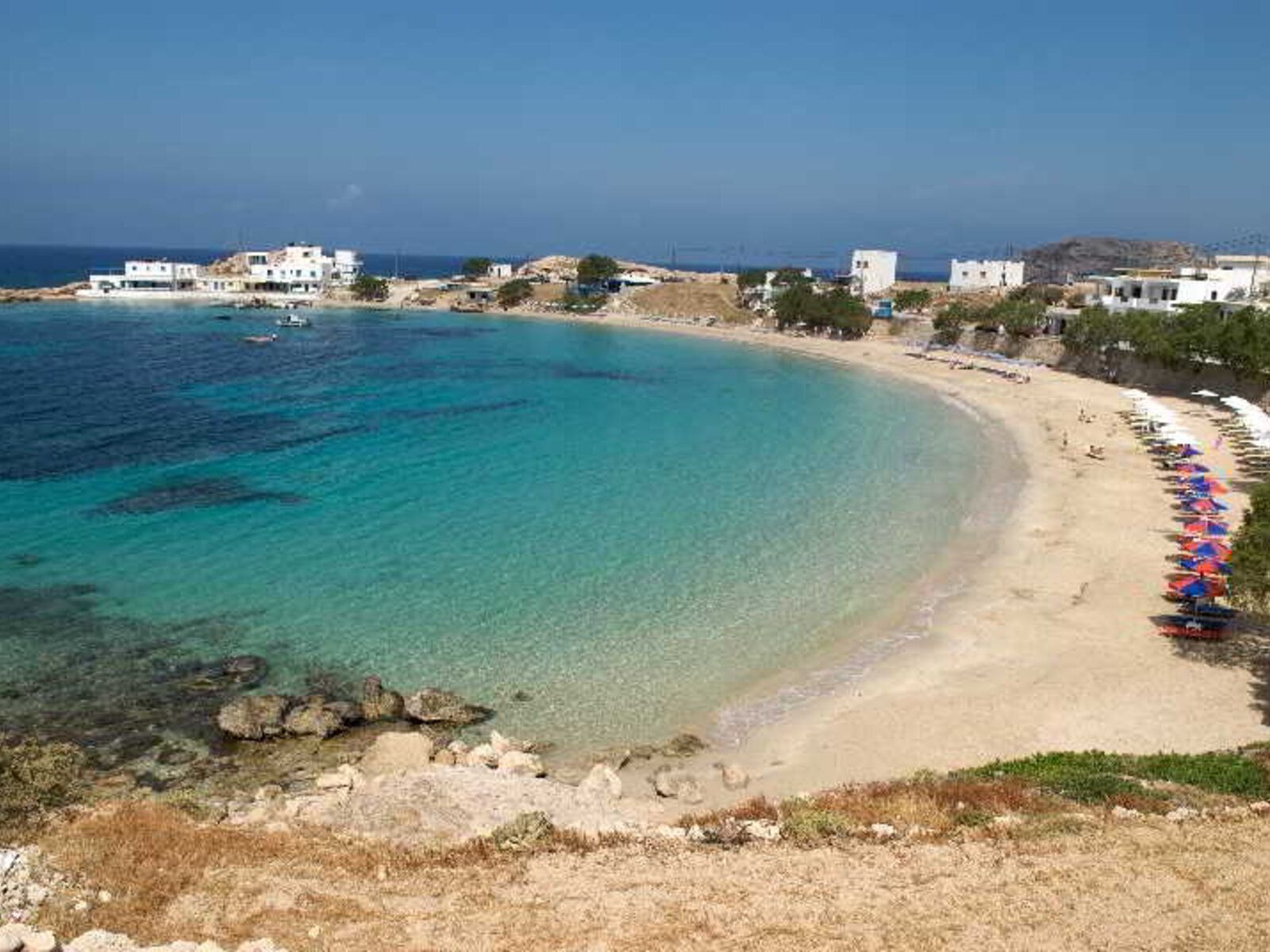 In Arkasa erwartet dich ein weißer Sandstrand mit glasklarem Wasser. Wenn du vollkommen entspannen möchtest, ist dieser Ort ideal, denn er ist sehr ruhig. Ein absolutes Plus: Hier kannst du die schönsten Sonnenuntergänge anschauen.