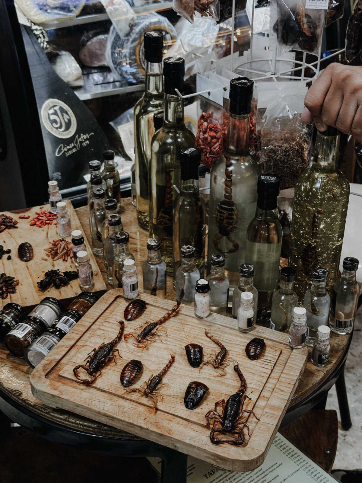 Um noch mehr von Mexiko auf uns wirken zu lassen, ging es für uns noch auf einen typisch mexikanischen Foodmarket, den Mercado San Juan. Juhu, noch mehr Food! Dort wurden wir gleich mal von Spinnen, Skorpionen und Schlangen empfangen und konnten ein paar besondere mexikanische Köstlichkeiten probieren. Über den Skorpion habe ich mich aber nicht drüber getraut.