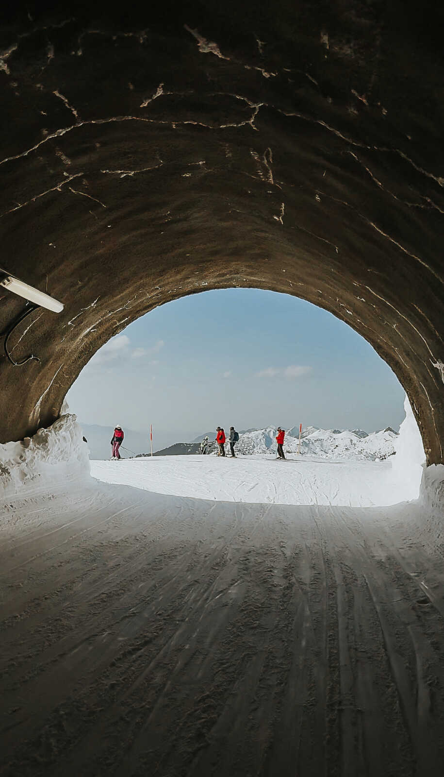 Eingangs habe ich schon ein paar „Fun-Facts“ über das Skigebiet Silvretta Montafon erwähnt. Neben dem nachhaltigen Konzept des Skigebiets, gibt es aber auch noch ein paar andere Highlights: Beispielsweise den längsten Skitunnel der Welt. Der Tunnel führt unter dem Hochjoch durch und ist 476 Meter lang. Wer also in der Silvretta Montafon unterwegs ist, darf den Tunnel natürlich nicht auslassen.