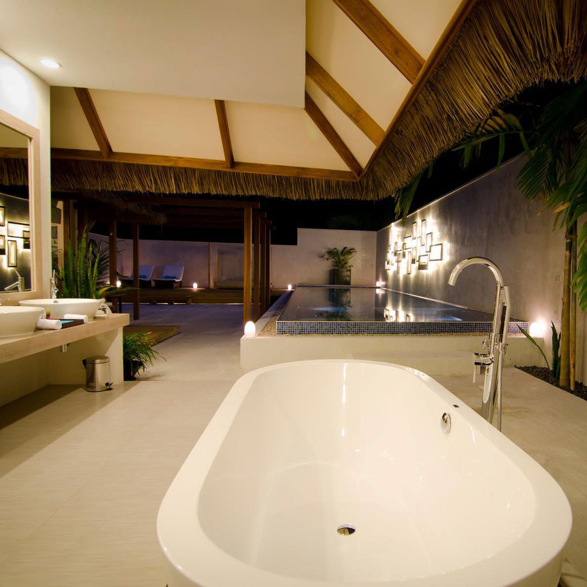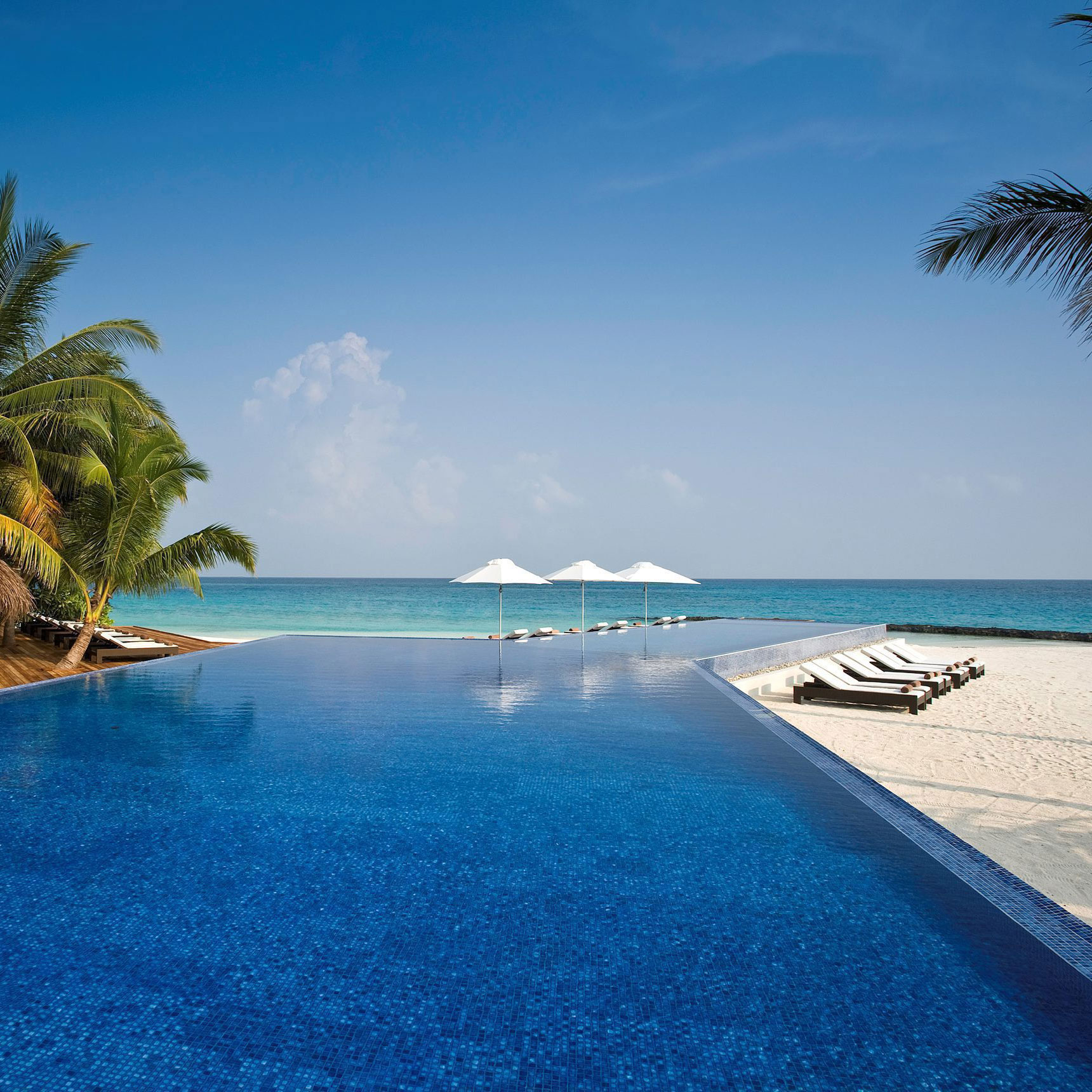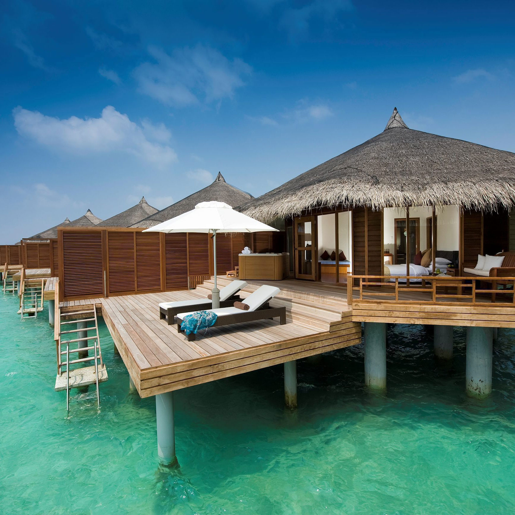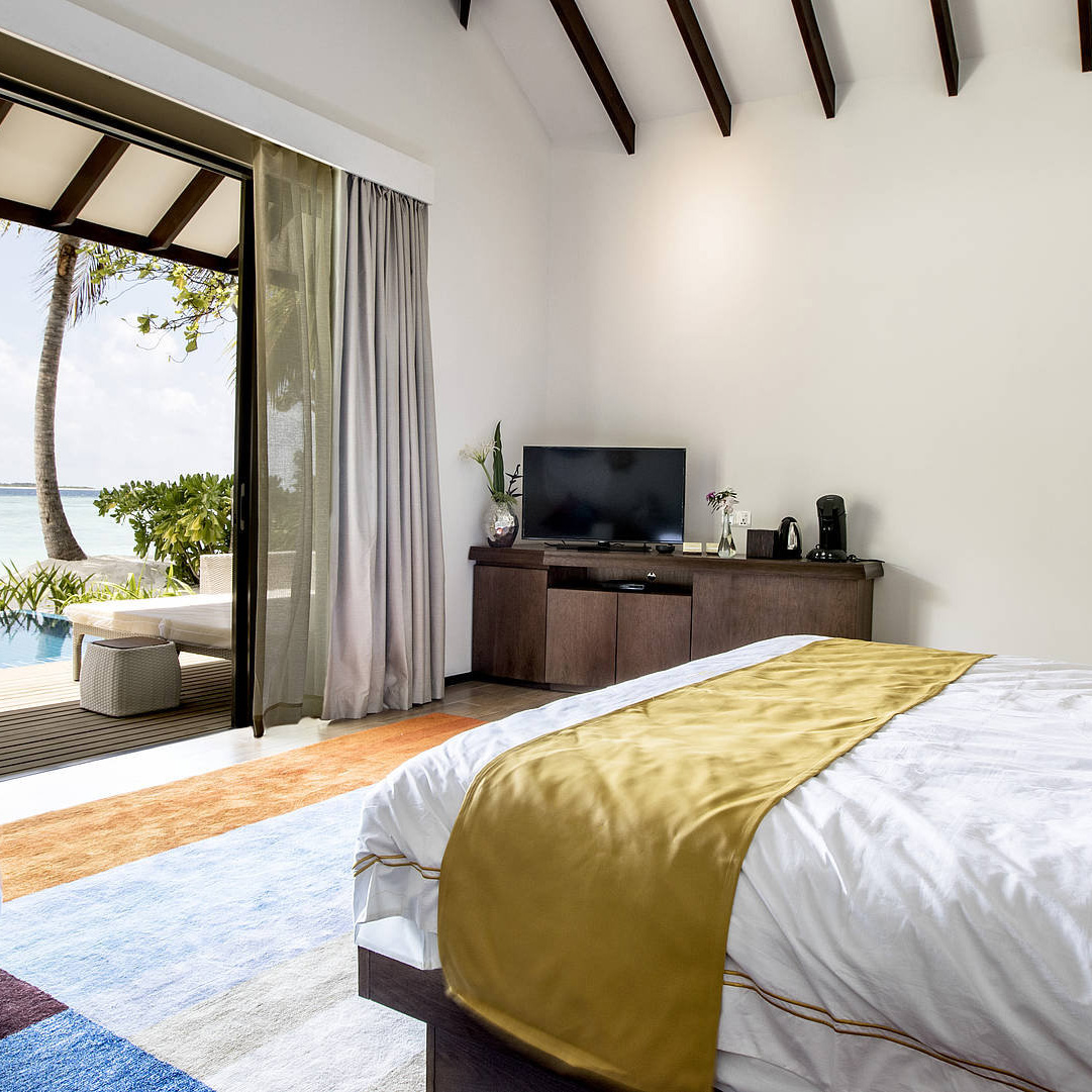 Es gibt sowohl Doppelzimmer, als auch Bungalows mit privatem Pool und eigenem Meerzugang. Besonders empfehlenswert sind die Wasserbungalows mit Pool. Wunderschön ist auch der für alle Gäste nutzbare Infinitypool.