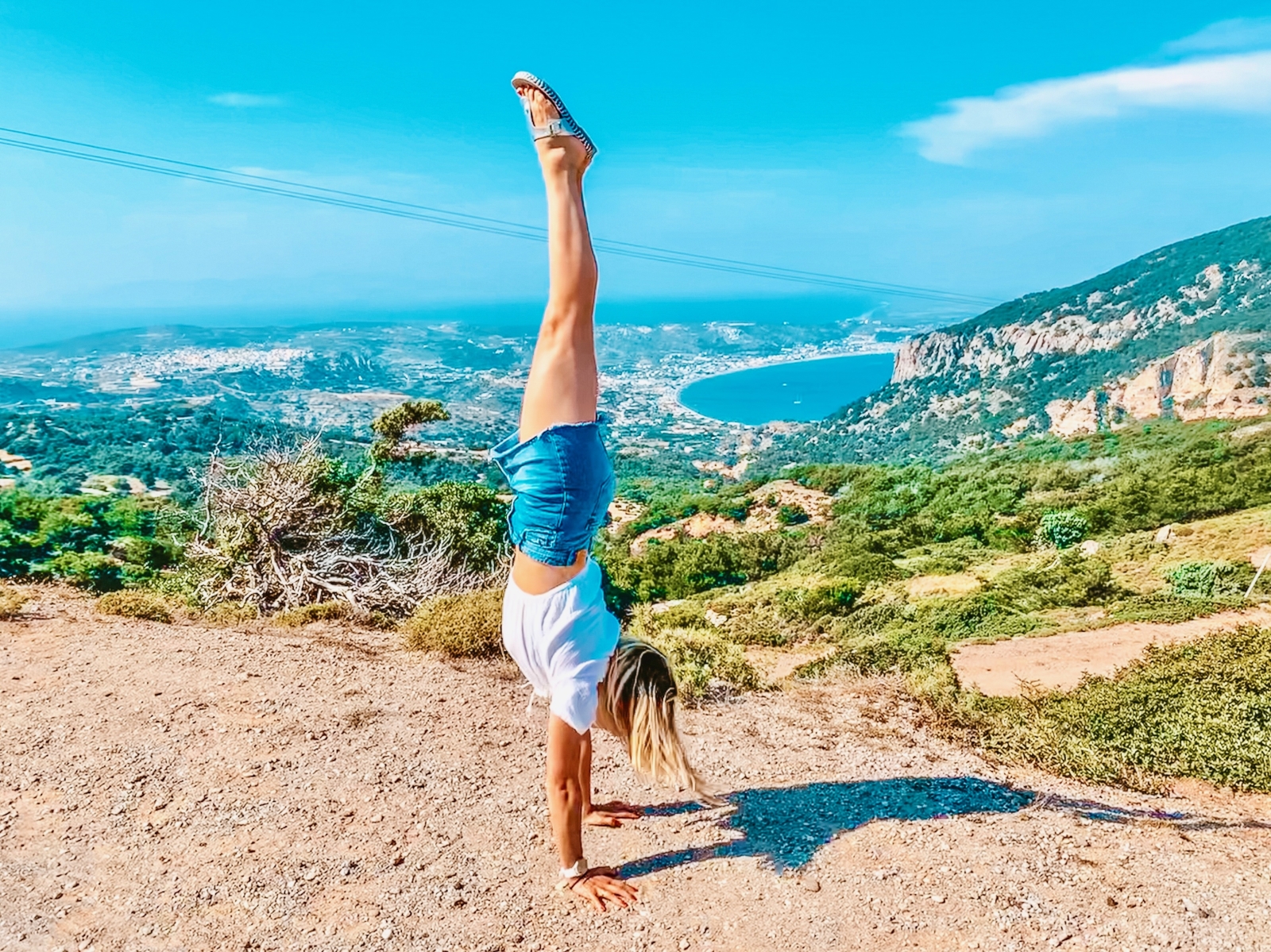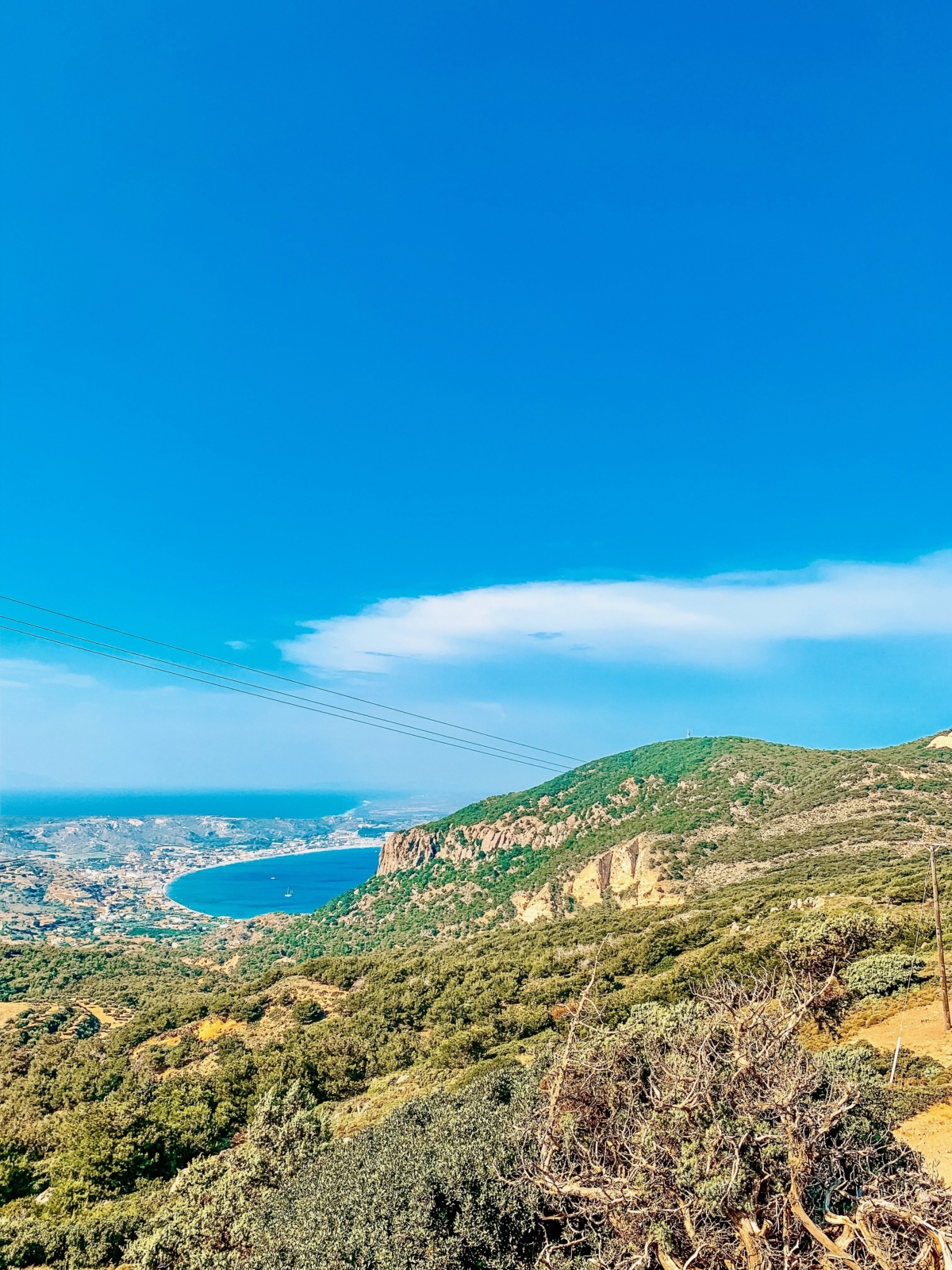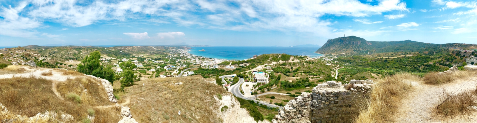 Ein weiteres Insel-Panorama aus einem etwas anderen Blickwinkel haben wir im nahegelegenen Gebirge entdeckt. Die südliche Küste von Kos und der „Paradise Beach“ sehen von dort wirklich magisch aus. Auch die facettenreiche Landschaft zeigt sich von ihrer besten Seite: sattgrüne Pflanzen und ausgedörrte Sträucher wechseln sich ab.