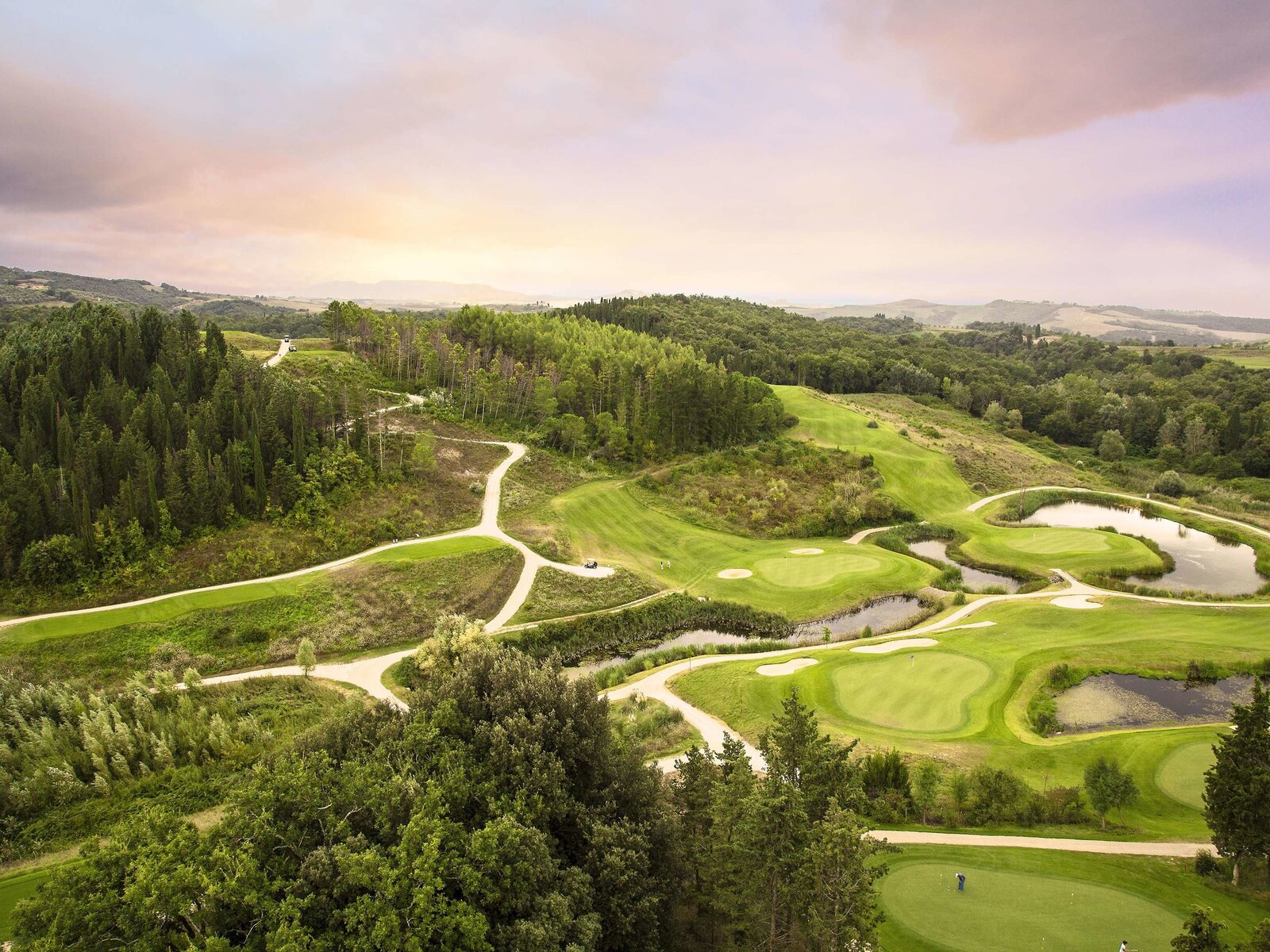 Mein absolutes Highlight war bis jetzt das Golfhotel Castelfalfi mit dem Golfclub Castelfalfi in der Toskana. Hier gibt es den Mountain Course und den Lake Course. Der Lake Course ist easy zu spielen – das ist eine Neun-Loch Golfrunde . Der Mountain Course ist etwas für richtig gute Golfer:innen. Ich habe momentan ein Handicap von 29 und dort habe ich mit 60 gespielt – also für mich war das bis jetzt der schwierigste Golfplatz auf dem ich jemals war.