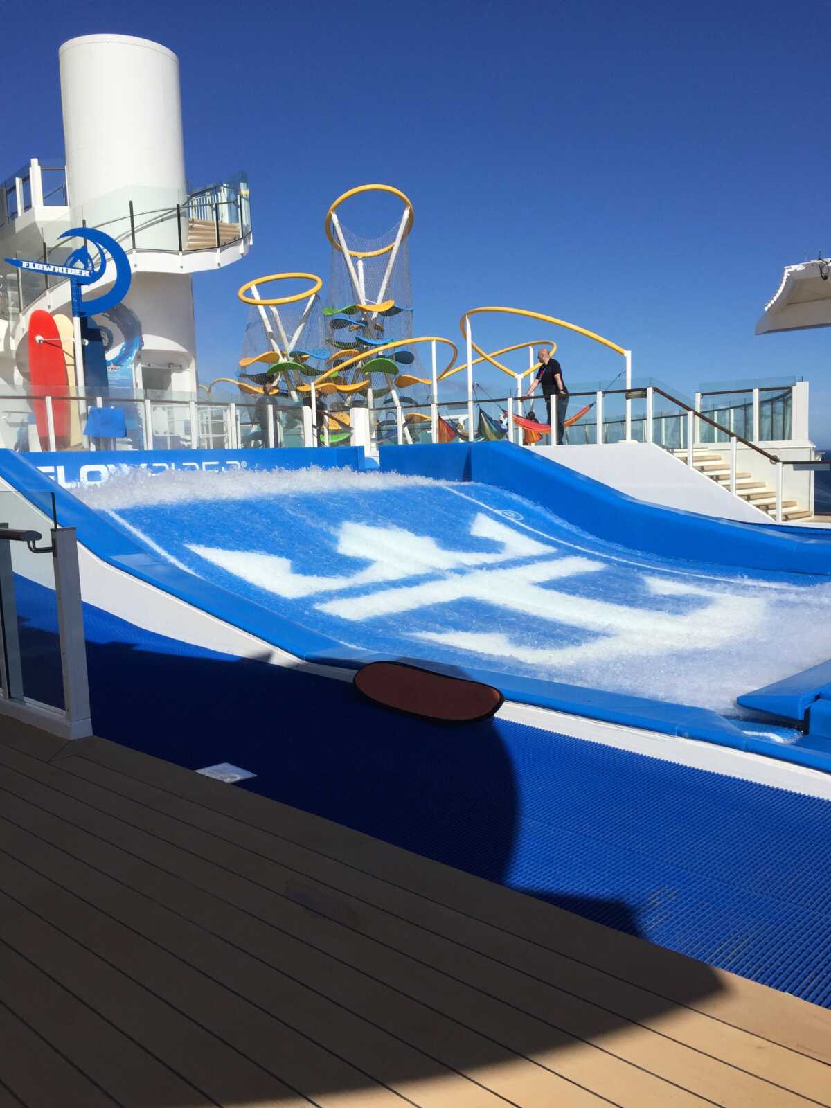 Das Coole an Kreuzfahrten ist, dass man sein Hotel immer dabei hat und dass man jeden Tag in einer neuen Stadt ankommt. Außerdem gibt es im „Hotel“ richtig viel zu sehen und zu erleben. Zum Beispiel kann man Go-Kart Fahren, golfen, am FlowRider stehen, in den Hochseilgarten oder laufen gehen, im Casino sitzen, eine Eislauf-Revue anschauen oder sogar selbst eislaufen. Also ich kenne kein Hotel, das so gut ausgestattet ist wie ein Kreuzfahrtschiff.