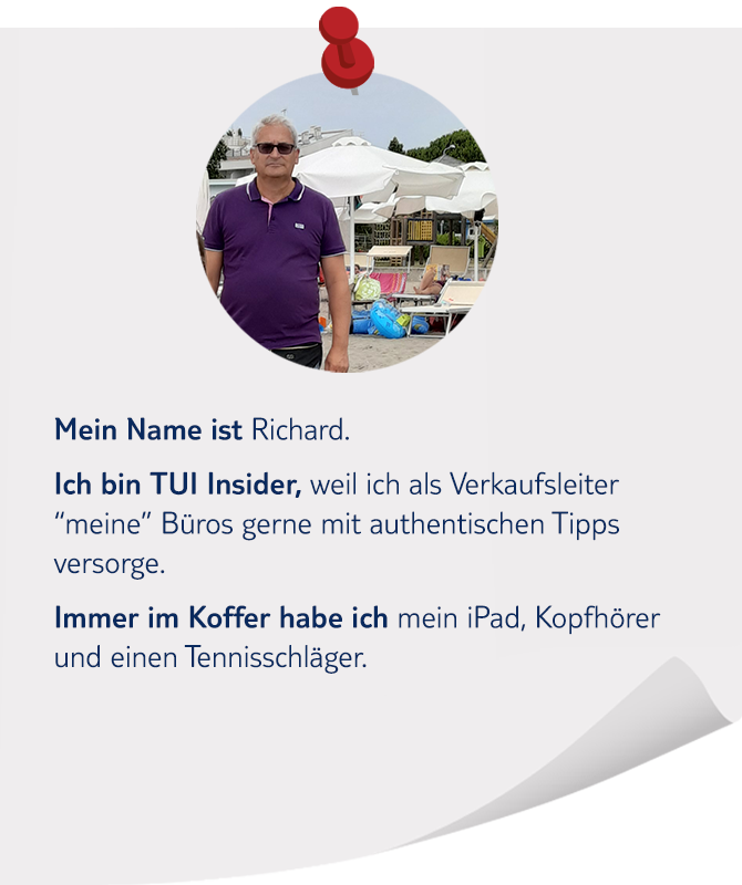 • Mein Hoteltipp ist … das Grand Hotel Astoria – sehr gute Lage, saubere Zimmer, ausgesprochen freundliches Service und ausgezeichnetes Essen. Ein besonderes Highlight ist die Dachterrasse mit Whirlpool. Außerdem ist der Markt am Samstag genau vor der Tür und auch Strand und Wasserpark sind nur wenige Gehminuten entfernt.