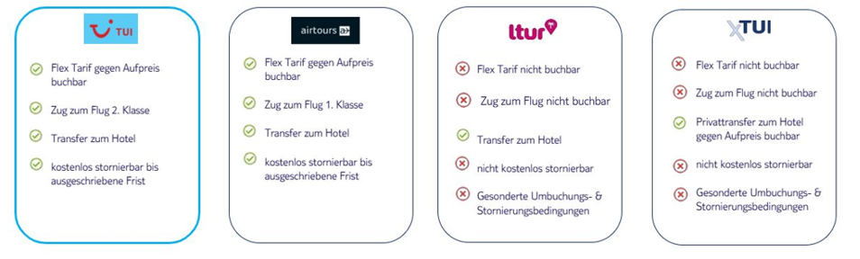 Pauschalangebote von TUI & airtours - Vor Buchungsabschluss sind alle enthaltenen Leistungen für Sie ersichtlich.
