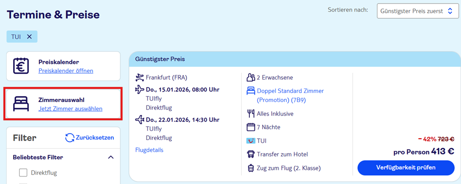 Unser Tipp: Buchen Sie bevorzugt TUI-Vertragszimmer (erkennbar an Codes wie DZX, FZX, SUX etc.) für mehr Sicherheit und klare Informationen.